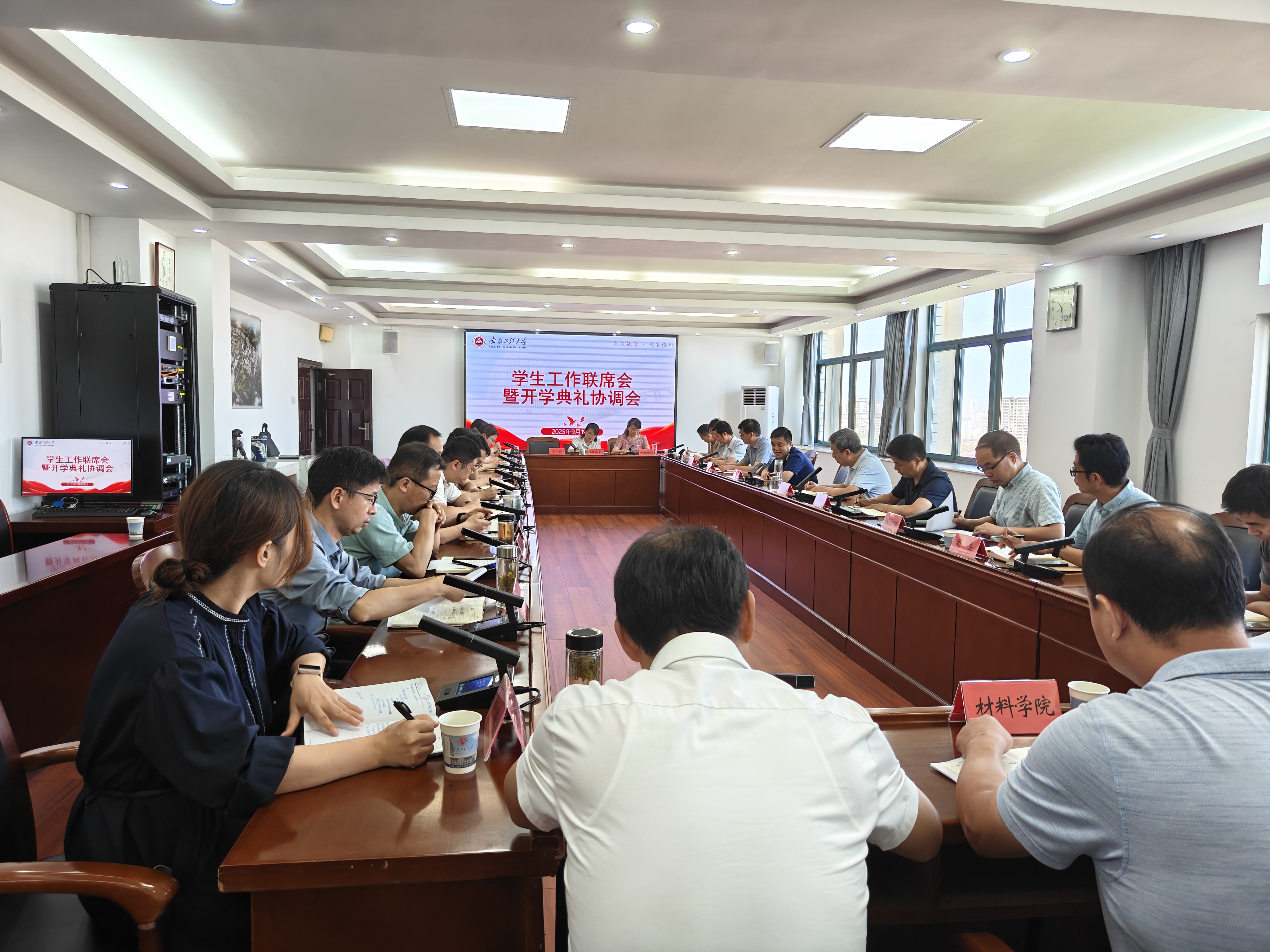9月19日,学校在行政楼1215会议室召开学生工作联席会议,布置新生开学典礼暨军训总结表彰工作。校党委常委、副校长张开炳出席并主持会议。相关部门负责人、各学院专职副书记参加会议。 张开炳指出,新生开学典礼是新生大学阶段的重要一课,是学校育人工作的重要环节,意义重大,备受师生家长关注。军训总结表彰则是对学生军事技能训练成果的集中检阅和展示,是新生入学教育的重要内容,是培养新生“精气神”的重要方式。他要求,要提高站位,高度重视,充分认识两项活动对展现学校形象、营造育人氛围的重要作用;要精心组织,细化方案,确保各个环节无缝衔接、各项流程顺畅有序;要强化协作,密切配合,树立全校“一盘棋”思想,形成工作合力;要落实责任,确保安全,扎实做好各项应急预案,全力保障活动圆满成功。