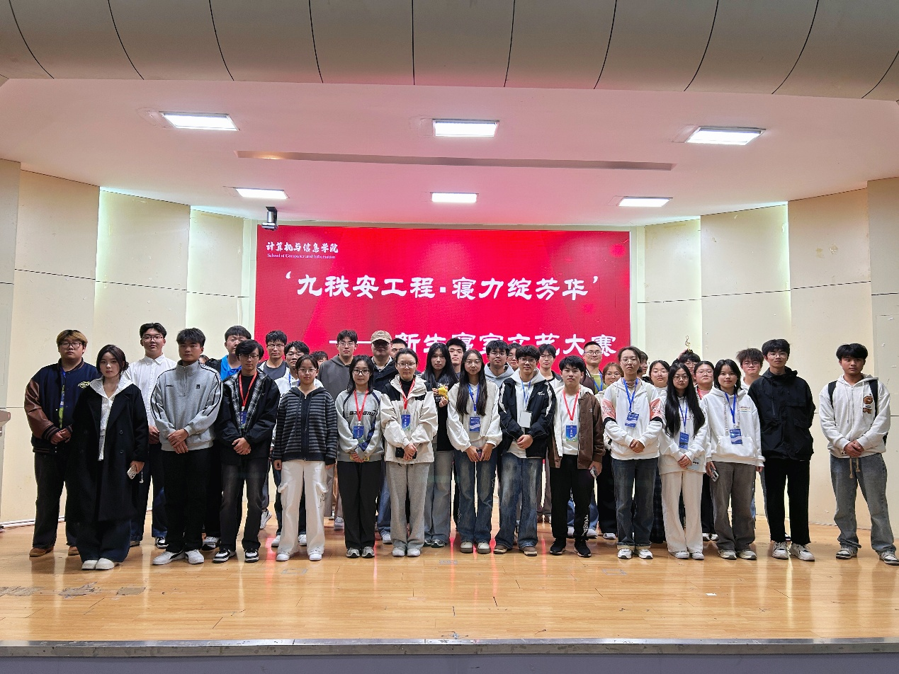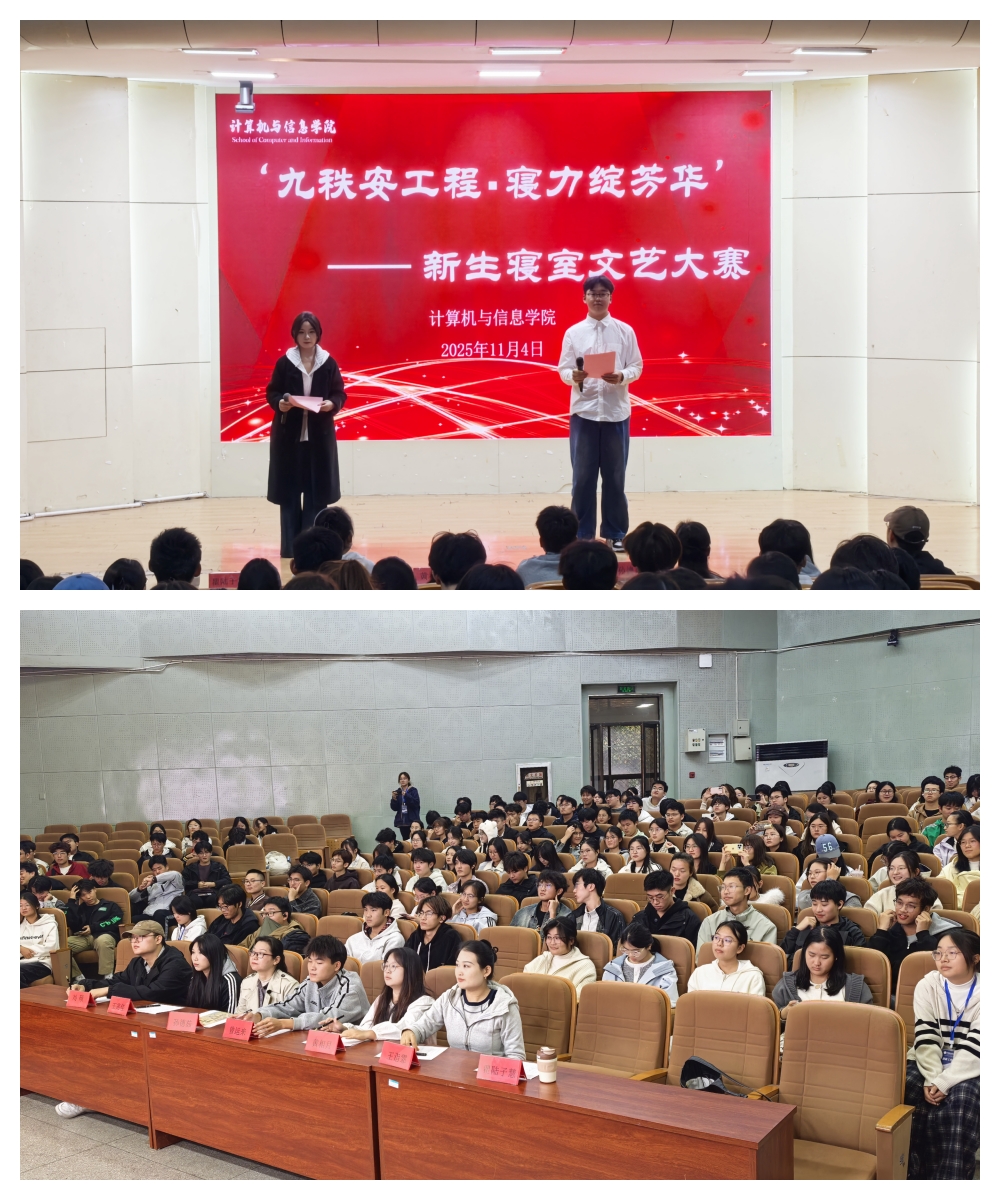 为庆祝学校建校90周年,丰富校园文化生活,展现2025级新生的青春风采,11月4日下午,计算机与信息学院“九秩安工程・寝心绽风华”新生寝室文艺大赛在校学术报告厅成功举办。学院党委副书记孙德茹、团委兼职副书记瞿陆子慧、新生辅导员王诣霏、陈安以及200余名新生代表共同参加了此次活动。