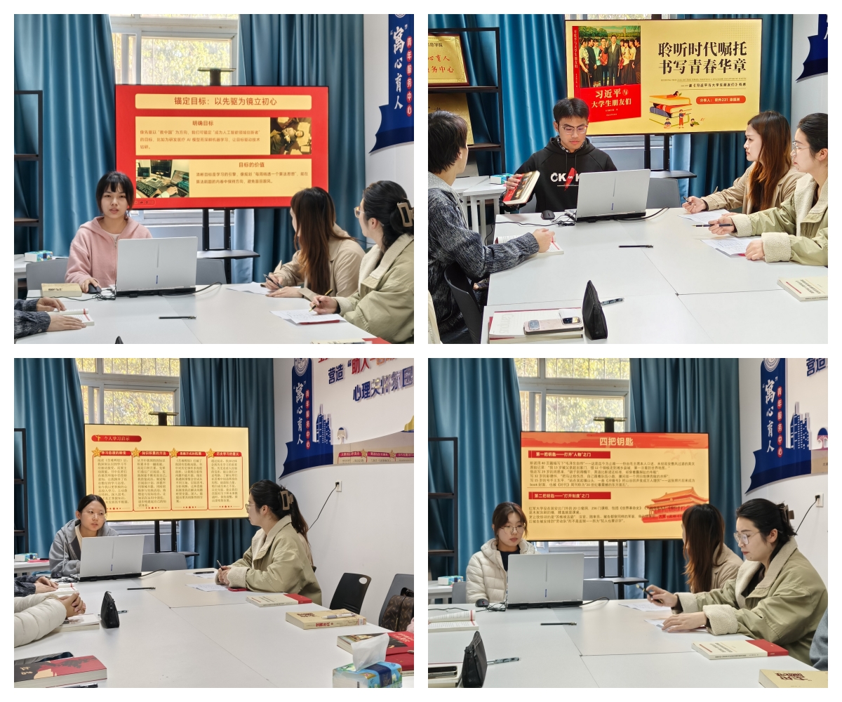 活动伊始,瞿陆子慧带领大家共同选读了《习近平与大学生朋友们》部分章节,并结合实际分享了学习体会。她指出,“这部著作生动展现了习近平总书记对青年一代的亲切关怀和殷切期望,大家要结合自身学习生活,用心体会、学思践悟,真正把总书记的嘱托转化为成长动力和行动自觉。”在交流环节,同学们踊跃发言,现场气氛热烈。计算机(拔尖)241陆颖结合《觉醒年代》一书,回顾了早期共产党人的奋斗历程,并结合自身经历,号召大家以先驱为镜立初心,把家国情怀落到日常;计算机244钟欣嫒分享了阅读《红星照耀中国》的感悟,表示要从革命先辈身上汲取精神力量,勇担时代使命;软件244贾含笑围绕《红岩》中革命者的英勇事迹,阐述了坚定信仰和严守纪律的重要性;软件231徐振洲结合专业特色和个人经历,分享了自己对《习近平与大学生朋友们》中“自找苦吃”的理解,并呼吁同学们珍惜当下,奋发有为。