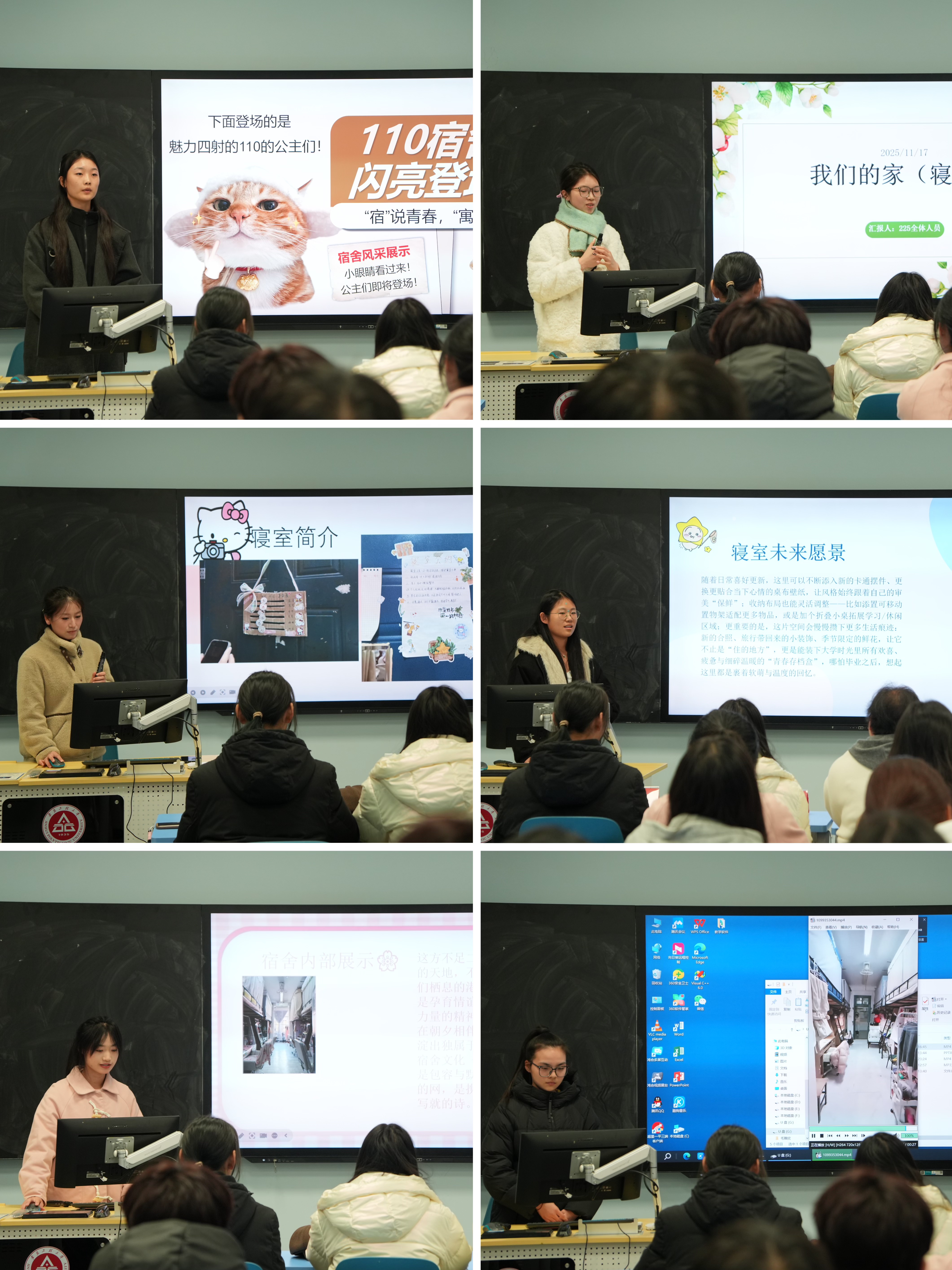 各参赛队伍通过精心制作的PPT、短视频,带领观众“云”游他们的温馨小家。一帧帧画面,一幕幕场景,不仅展现了整洁优雅的居住环境,更传递了和谐融洽的舍友关系和积极向上的精神风貌。经过初赛、复赛的激烈角逐,全院宿舍中共有8支优秀队伍在比赛中胜出。