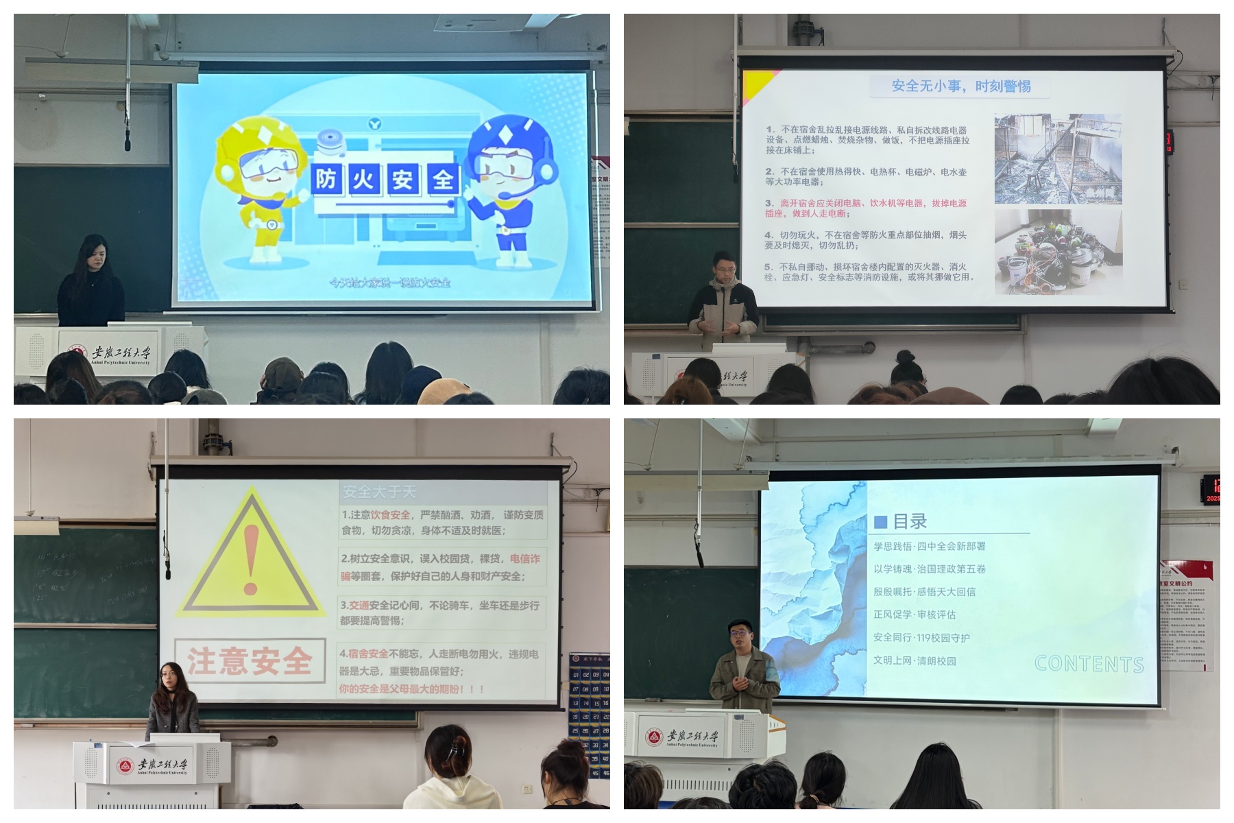 在全国第34个“11.9”消防宣传日来临之际,为切实增强全体师生的消防安全意识,提升应急避险与自救互救能力,设计学院围绕“全民消防、生命至上——安全用火用电”这一核心主题,精心策划并开展了一系列丰富多彩、形式多样的消防宣传月活动,全力构建校园消防安全的坚固堡垒。 主题班会:思想防线固根基 各年级辅导员积极组织召开消防安全主题班会,化身安全知识的传播者。班会上,辅导员们借助精心制作的PPT,深入剖析近年来发生的校园火灾真实案例,一个个触目惊心的画面、一组组令人痛心的数据,让同学们深刻认识到火灾的严重危害。同时,详细讲解消防安全常识,从火灾的成因、预防措施到火灾发生时的应对方法,一一进行解读。为了让同学们更好地掌握灭火器材的使用,辅导员们还现场演示了灭火器、灭火毯等常见灭火工具的操作步骤,并邀请同学们上台进行模拟操作,切实强化了同学们“防患于未然”的安全意识,提升了自我防护与应急处置能力。