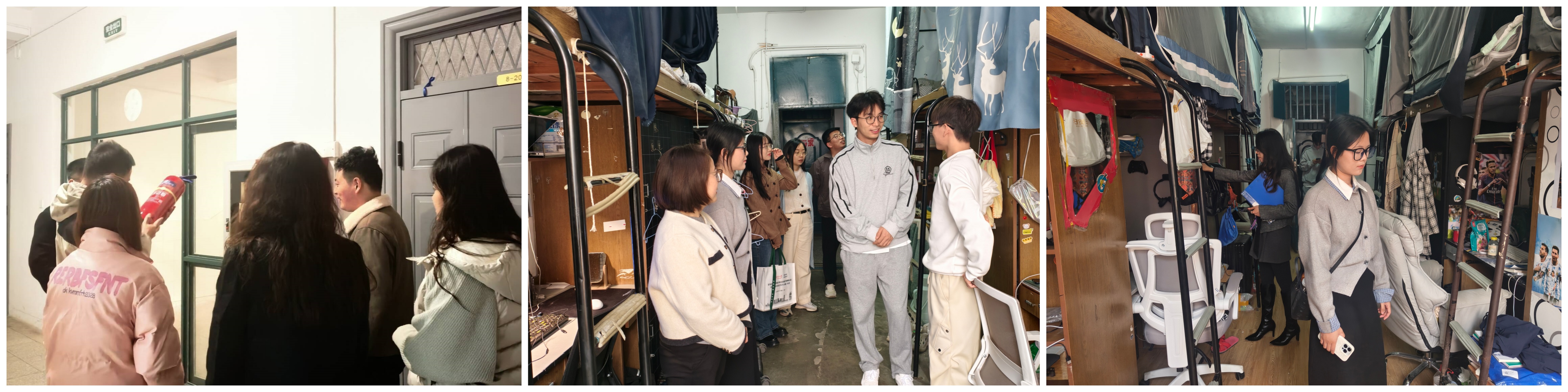 宿舍检查:隐患排查保平安 学院领导高度重视学生宿舍的消防安全,亲自带队深入学生宿舍开展安全卫生专项检查。检查过程中,辅导员重点排查了违规电器使用、私拉电线、杂物堆放以及消防通道堵塞等安全隐患。对于发现的问题,当场记录并要求相关同学立即整改。学院领导还与同学们亲切交流,耐心讲解宿舍安全用电的重要性,提醒大家要牢固树立安全意识,自觉遵守宿舍管理规定,共同营造一个安全、整洁、舒适的宿舍环境。同学们纷纷表示,将积极配合学院工作,从自身做起,杜绝安全隐患。