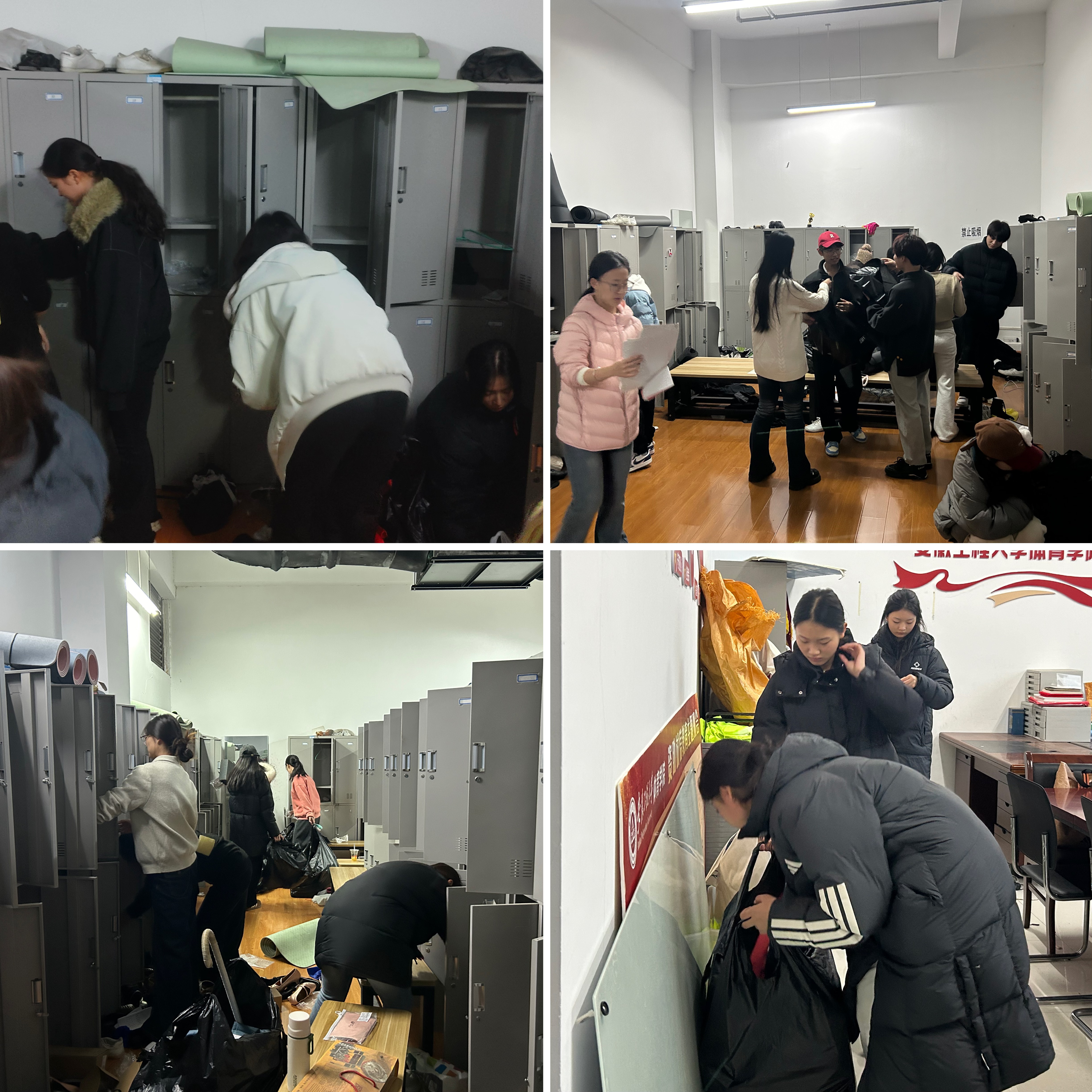 活动伊始,范同军作了动员讲话。他强调,校园安全无小事,消防安全更是重中之重。全体学生更要牢固树立“安全第一,预防为主”的思想,时刻绷紧安全弦。他结合一些高校消防安全形势和典型案例,阐述了彻底排查清理隐患、保持消防通道畅通、熟悉消防设施使用的重要性,并希望以此次活动为契机,进一步强化校院两级协同,提升师生“自查、自改、自防、自救”能力,共同筑牢校园消防安全“防火墙”。 本次行动活动聚焦消防安全隐患整治与环境清洁美化相结合,旨在通过排查清理,消除潜在风险。同学们分组对舞蹈教室、器材仓库、学生活动空间等重点场所进行了拉网式清理与排查。重点清理了各类杂物、易燃物堆放,确保消防通道、安全出口畅通无阻;细致检查了消防设施器材是否完好有效、用电用气是否规范、电线线路是否安全。