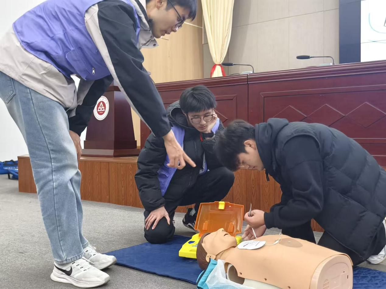 在自动体外除颤器(AED)的讲解中,主讲人介绍了AED的工作原理、适用范围以及在公共场所的配备情况。详细说明了电极片的正确粘贴位置和操作注意事项,强调了AED在心脏骤停急救中的重要作用。 此次急救知识宣传讲座内容丰富、实用性强,通过理论讲解、现场演示和实践操作相结合的方式,让师生系统学习了常见急救知识和技能,有效提升了应急救护能力,为构建安全和谐的校园环境奠定了坚实基础。 (文:吴旭;图:王麟哲;预审:陶冶;审核:杨善祥)