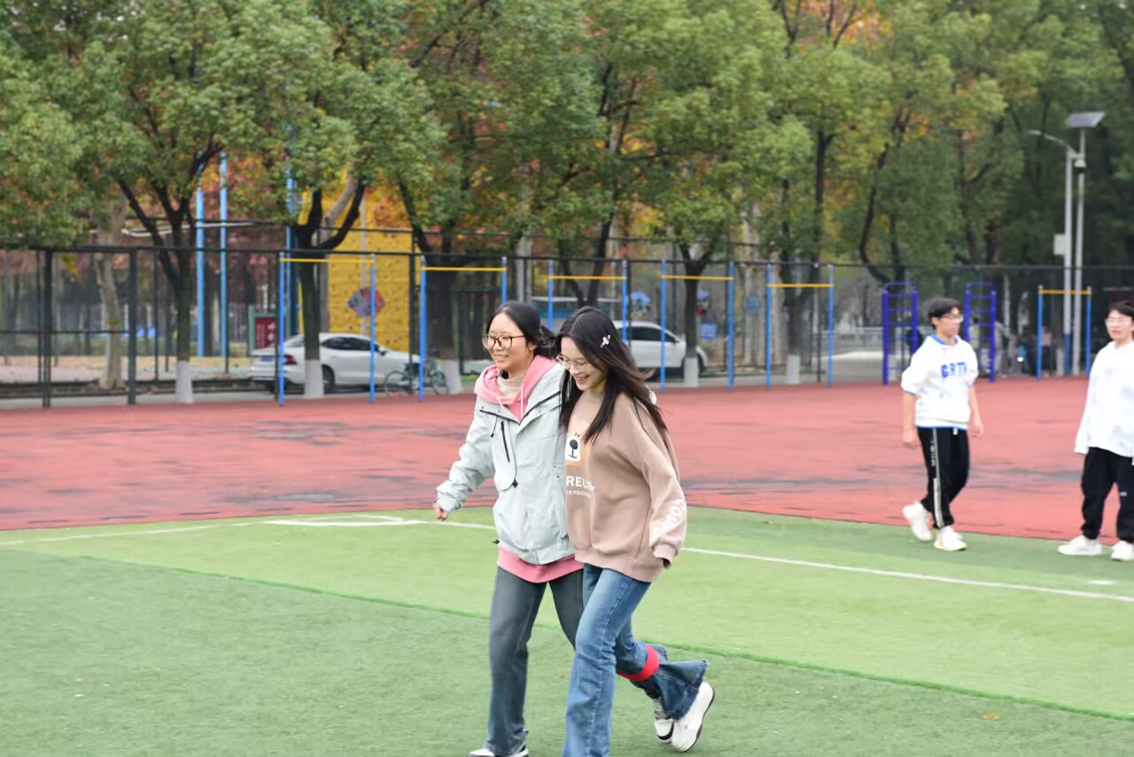 全能挑战中迸发激情,活力闯关点燃热潮。“活力闯关趣味接力赛”作为全场综合性最强、挑战度最高的项目,将活动氛围推向顶峰。50米赛道上,连续踢毽子、跳绳、转呼啦圈跑、乒乓球托球跑、“大象转”、精准投球等关卡依次排开,队员们需接力完成全套任务。赛场上,转着呼啦圈的灵动身姿、“大象转”后踉跄却坚定的步伐、接力时全力冲刺的模样,都定格为动人图景;此起彼伏的加油声、闯关成功的欢呼声,尽显电气学子不服输、敢拼搏的团队精神。