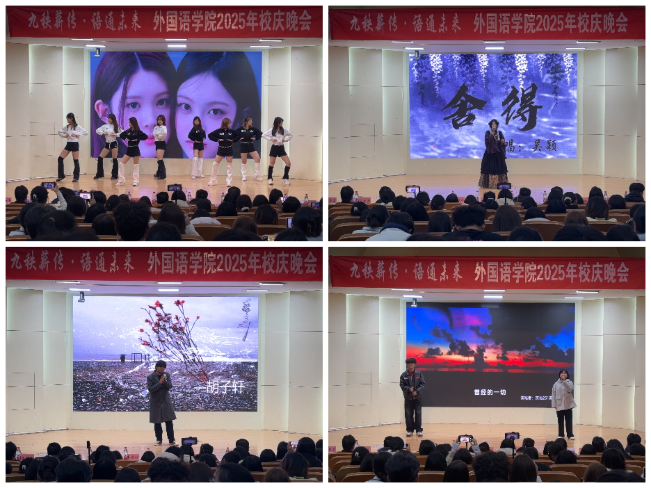 本次晚会紧扣学校90周年校庆主线,以“九秩薪传 语通未来”为核心主题,精心设置“忆·往昔”“绽·今朝”“望·未来”三大篇章,通过舞蹈、歌曲、器乐、朗诵等多元艺术形式,串联起学校九十载砥砺奋进的发展历程,诠释了外语人“传薪火、通世界、担使命”的精神内核。