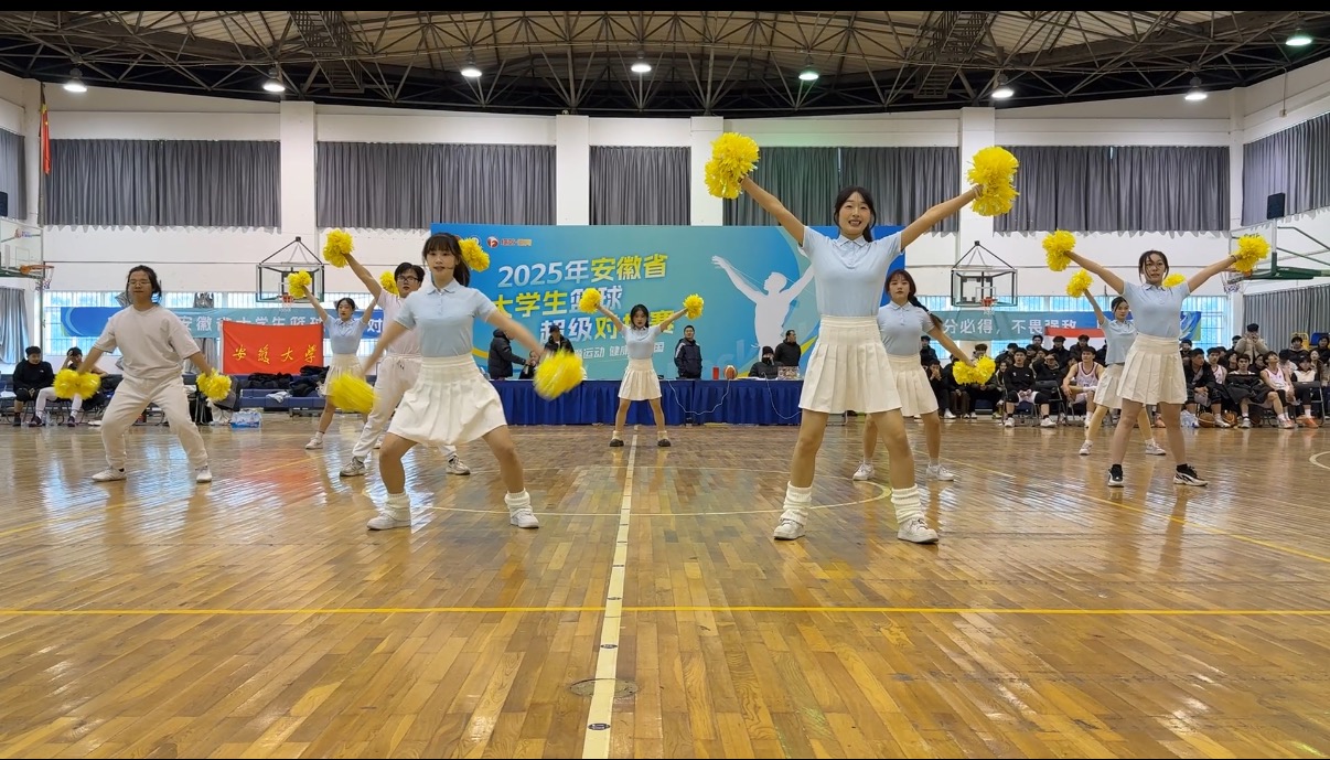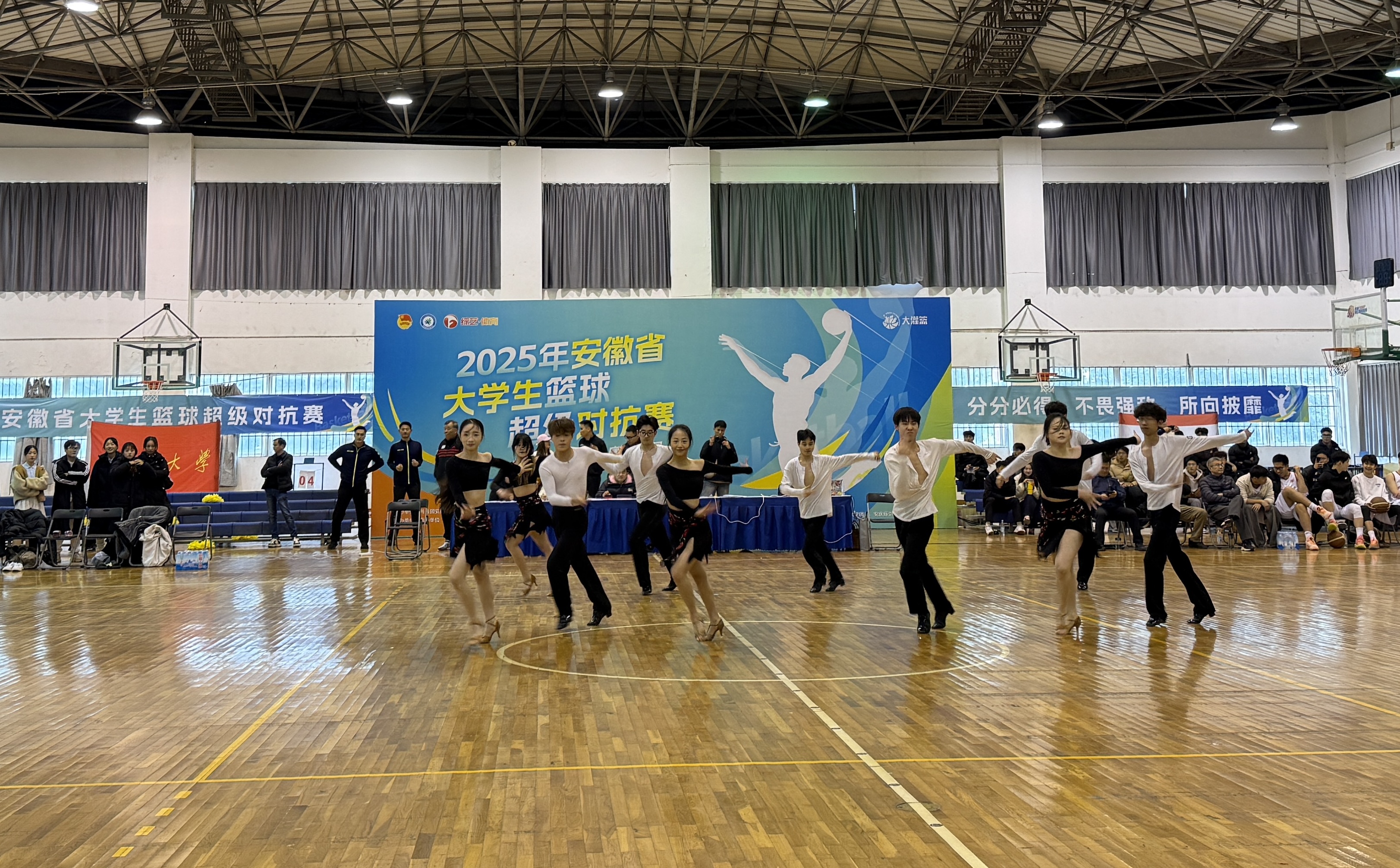 12月21日,2025年安徽省大学生篮球超级对抗赛(第二阶段比赛)在安徽工程大学体育馆激情上演,安徽工程大学男篮与安徽大学男篮展开巅峰对决。在开幕式上,来自我院的学子们以一场充满青春活力与艺术激情的精彩表演,点燃了全场气氛,成为赛事一道亮丽的风景线。 体育学院表演专业学生党支部、表演241、251、252、253班级团支部分别带来体育舞蹈《热烈桑巴》、当代舞《忠诚之歌》、啦啦操《舞动青春》激情开场。整齐划一的动作、活力四射的编排,搭配明快激昂的音乐,舞者们用蓬勃的朝气与灵动的舞姿,充分展现了当代大学生的青春风采,不仅为紧张的赛事注入轻松活力,更给场上球员带来精神鼓舞,将现场气氛推向又一个高潮。