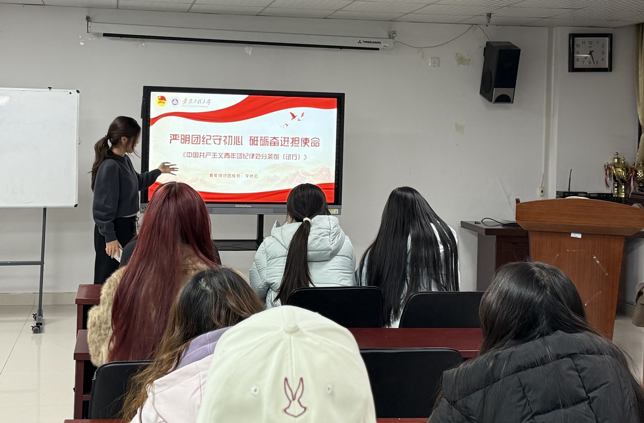 本次宣讲紧扣共青团纪律相关内容,李岢芯同学条理清晰地从总则、违纪与纪律处分、团纪处分运用规则、对违反纪律行为的处分、对违法犯罪团员的团纪处分、附则六个核心板块展开讲解宣讲过程中,她结合生动案例,将严谨的团纪条文转化为通俗易懂的内容,让同学们深刻认识到严守团纪对于团员成长、团组织建设的重要意义。 此次宣讲不仅帮助同学们夯实了团纪理论基础,更引导大家树立起严守纪律、勇担使命的责任意识,为青年团员在成长道路上恪守初心、砥砺前行筑牢了思想根基。下一步,学院团委将把《条例》要求全面融入团员日常教育管理,建立纪律教育长效机制,持续强化团员纪律意识与责任担当,为学院团的事业高质量发展和青年团员健康成长保驾护航。 (文/图:表演253班团支部;编辑:王康;预审:马晓琼;终审:纪天新) |