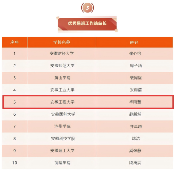 1月14日,安徽省高校网络思想政治工作中心、安徽省高校易班发展中心公布了2025年度安徽省易班共建优秀工作评选结果。我校易班工作在评选中斩获三项荣誉:《“青春印记”vlog校园行——校媒共建赋能网络育人新实践》获评优秀易班共建案例,《“易见倾新”安徽工程大学2025年迎新案例》获评优秀易班迎新案例。同时,华雨萱同学凭借出色表现,第三次获评“优秀易班工作站站长”荣誉称号,实现该奖项的“三连冠”。