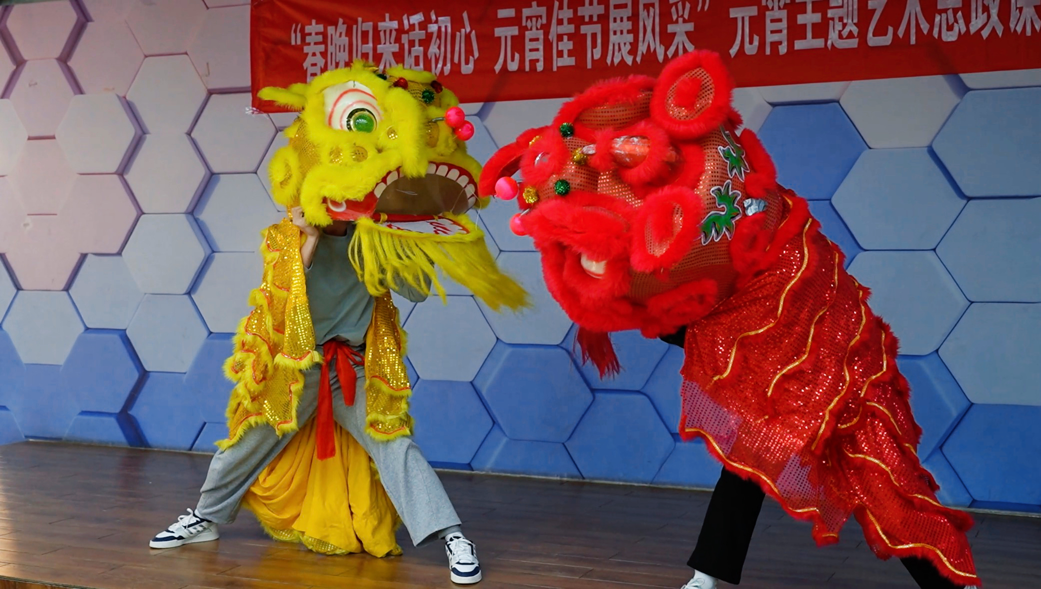 活动现场,体育学院学生进行了舞狮、武术、舞蹈等传统民俗节目表演,展现专业技能与传统文化融合。随后,学院师生共同参与包元宵、品元宵环节,在节日氛围中增进交流互动。
