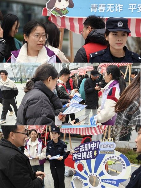 扎根社区,推动社区织密反诈网 3月4日,学院青年志愿者团队联合新兴社区,深入居民小区,针对社区居民特别是老年群体,开展“反诈反邪”主题宣传活动。志愿者们梳理了养老诈骗、刷单陷阱等典型案例,设计了“反诈投壶”互动游戏,引导社区居民“不轻信、不转账、不透露个人信息”,强化防骗意识。一位参与活动的居民表示:“这种游戏形式让我们在轻松氛围中记住了防骗要点,比单纯听讲解更有效。”