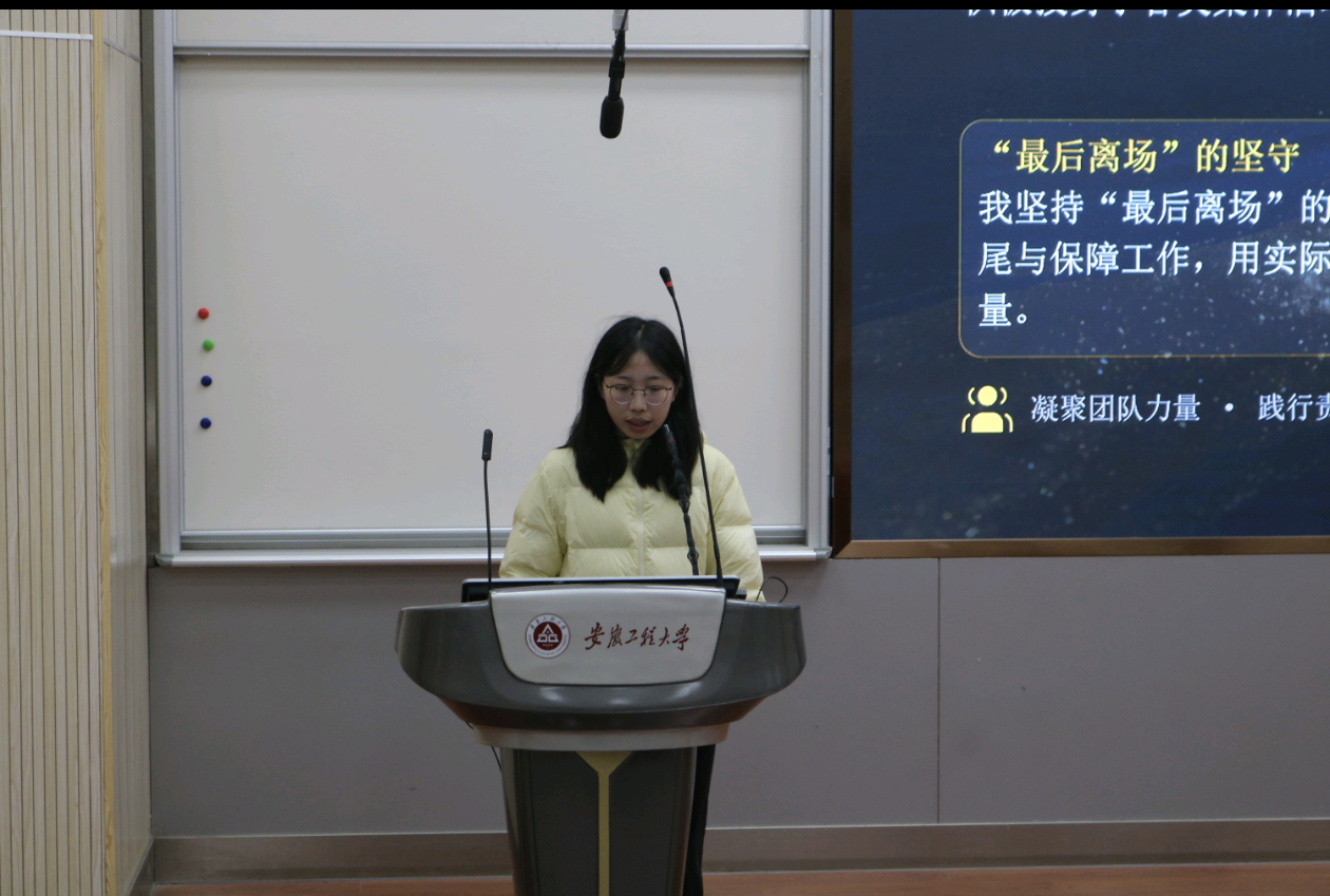 青春成才:以奋斗之姿绘成长画卷 最后,国家励志奖学金获奖代表万根平以“追光而遇,沐光而行”为题,围绕责任、励志、成才三大核心分享成长历程。她从目标设定、效率提升、心态调整等方面详细讲述了如何平衡专业学习、社会实践与日常生活。她结合自身学习与实践经验,鼓励同学们明确目标、珍惜时光、勇于突破。
