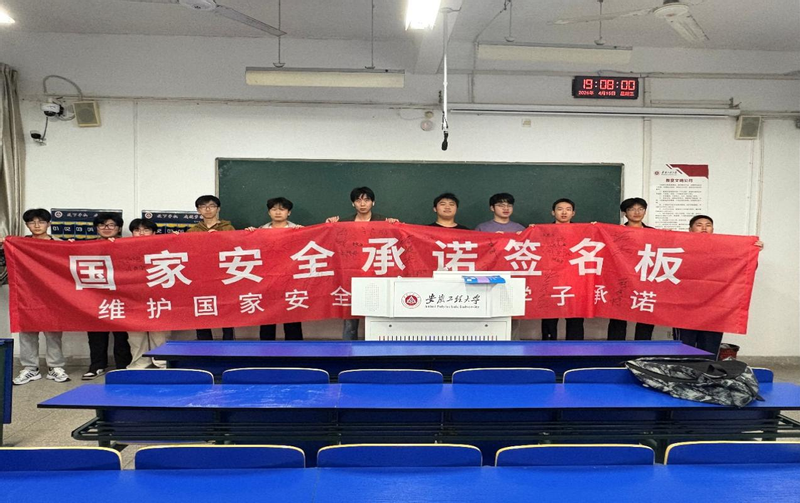 签名践承诺:誓言中的青春担当。随后开展的“国家安全青年承诺”签名活动现场气氛热烈。全体团员在签名板上郑重落笔,许下维护国家安全的青春誓言,彰显了“国家安全,人人有责”的行动自觉。 歌声传情怀:旋律中的家国深情。活动最后,全体团员齐声同唱《我和我的祖国》。熟悉的旋律将国家安全与祖国命运、个人责任紧密相连,进一步激发了同学们的爱国热情与守护国家安全的责任意识。 此次示范性主题团日活动以多元形式推动国家安全理念入脑入心,切实提升了学生的国家安全意识与风险防范能力。土木252团支部将持续深化国家安全教育,引导青年学子以实际行动践行国安责任,为守护国家长治久安贡献青春力量。 (文/图:何香坤;初审:吴敏;终审:张礼波) |
