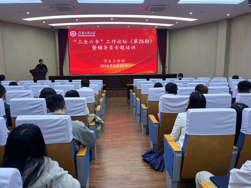 4月22日,学校在行政楼104会议室举行“三全六专”工作论坛(第25期)暨辅导员专题培训会。校党委常委、副校长张开炳,各学院党委副书记、全体辅导员、学工部和研工部工作人员参加了活动。活动由学工部部长黄炜主持。 张开炳为2026年辅导员工作室负责人颁发聘书。他指出,全体辅导员在思想引领、学风建设、学生事务管理、心理健康教育、就业指导服务及校园安全稳定等方面扎实工作,为护航学生成长成才、维护校园和谐稳定作出了积极贡献。他对全体辅导员提出了殷切期望和工作要求:要坚守初心,立足岗位,把各项工作做实做细,切实履行好辅导员的责任与使命;要突出重点,织密筑牢安全防线,加强对学生的安全教育和日常管理,提升学生安全防范意识,确保校园安全稳定;要提升本领,掌握工作基本技能,主动顺应时代发展和社会需求,不断学习新知识、新方法,提升自身综合素质和专业能力,更好地服务学生成长;要善用智慧,遵循育人客观规律,主动运用现代管理手段和信息技术,提高育人工作的针对性和实效性。 会上,市委人才工作局政策综合科俞昊系统解读了芜湖市紫云英人才计划。教务处副处长王建彬就我校教学运行与学籍管理做深度介绍。纺织服装学院、机械与汽车工程学院、人工智能学院辅导员分别就考研引导与服务、生涯发展课程教学师资认证培训、“一站式”学生社区建设提质增效专题等做了经验分享和交流。学工部负责人就近期学生重点工作做了交流和布置。