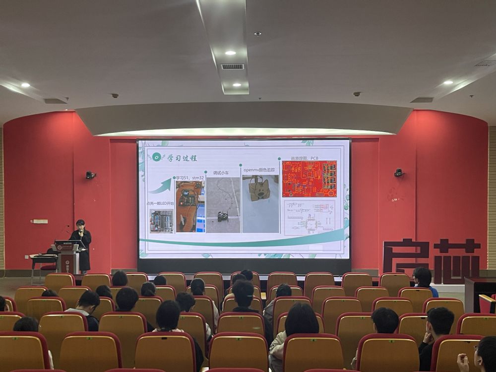 4月22日下午,集成电路学院在梦溪报告厅举办“启芯”系列报告会第四期。薛浩冉、郭文静、李子怡三名同学担任主讲人,围绕考研、科创竞赛与学业规划展开经验分享。 拟录取上海交通大学电子与通信工程专业的薛浩冉同学,分享了自身考研择校、复习备考及复试经验。他还以电子设计、智能汽车竞赛等国赛经历为例,强调动手能力在复试中的关键作用,鼓励同学们以赛促学、深耕专业。“西门子杯”最佳女性工程师、全国特等奖得主郭文静同学,结合自身荣誉分享竞赛备赛技巧,梳理适配专业的高含金量赛事,传递“工程师不分性别,只看实力”的信念,引导学子在实践中锤炼技能。学院学生会执行主席、国家奖学金获得者李子怡同学,结合自身获奖经历,传授课前预习、课后复盘等高效学习及时间管理技巧,为学子解答学业、学生工作与竞赛的平衡难题,鼓励大家全面发展。在互动环节,三位学子耐心答疑,现场氛围热烈,学子们均表示收获颇丰。