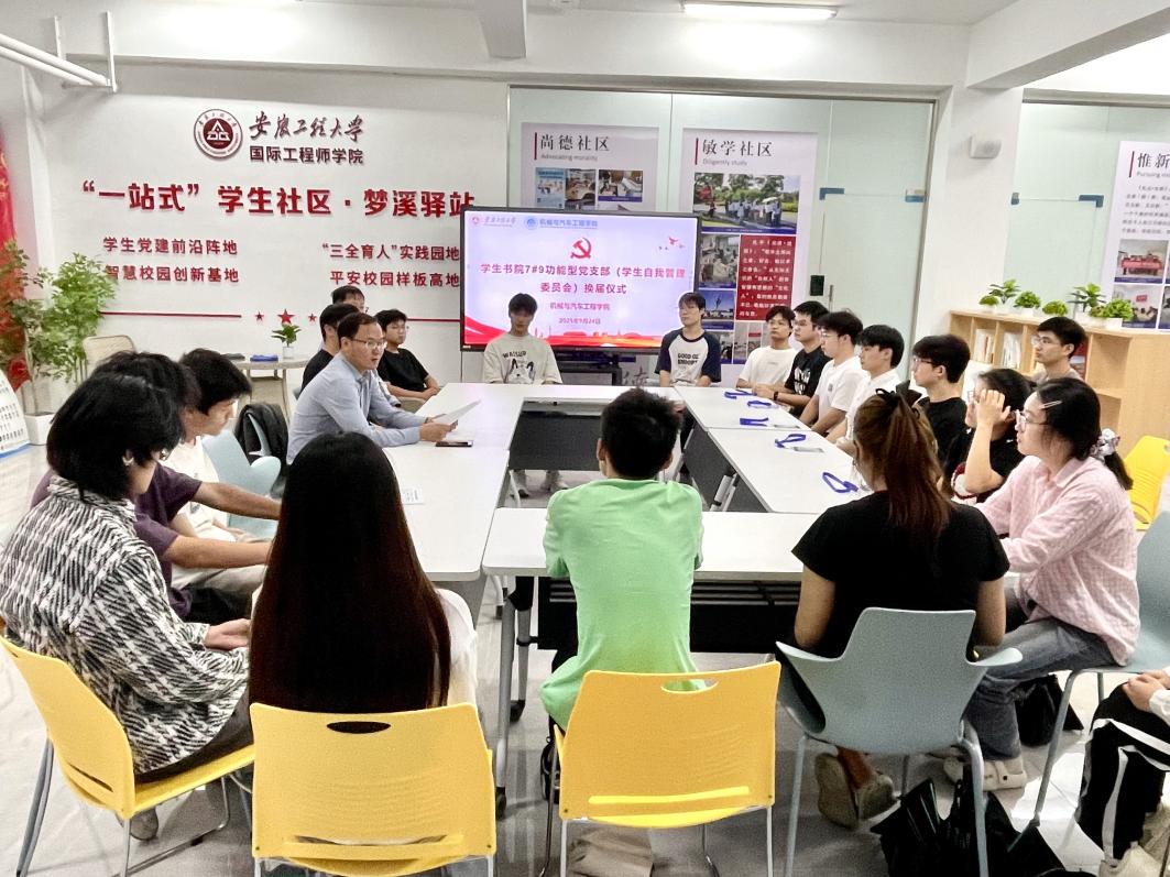 为充分发挥大学生在学生社区建设中的主体作用和自我教育、自我管理、自我服务、自我监督的功能,切实加强学生社区网格化建设,充分发挥学生宿舍育人作用。9月24日,机械与汽车工程学院在学校“一站式”学生社区举行学生书院7-9功能型党支部暨学生自我管理委员会换届仪式。学院党委副书记秦广虎、相关辅导员代表以及全体7-9功能型党支部、学生自我管理委员会成员参加了本次活动。